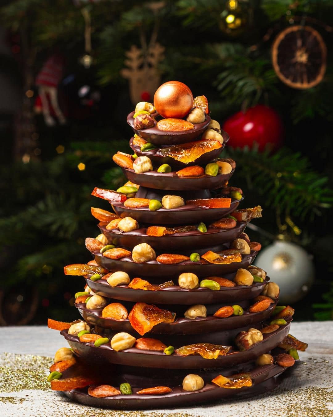Glace au chocolat, biscuit noisette, caramel fondant et croustillant noisette
